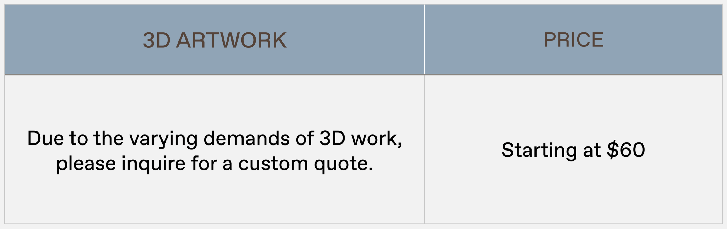Delivery formats: (1) TIFF, (1) High-Res JPEG, & (1) Web-sized JPEG per artwork.